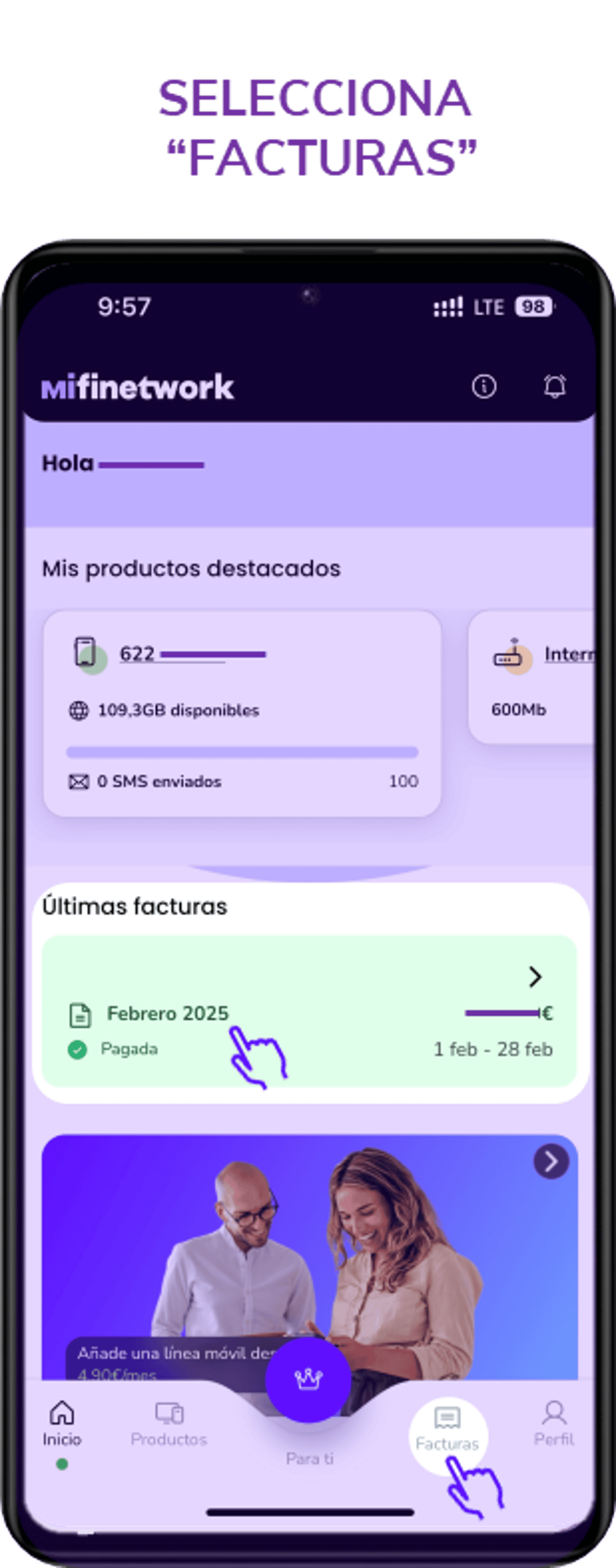 Te dejamos una guía rápida para que puedas ver o descargar tus facturas: