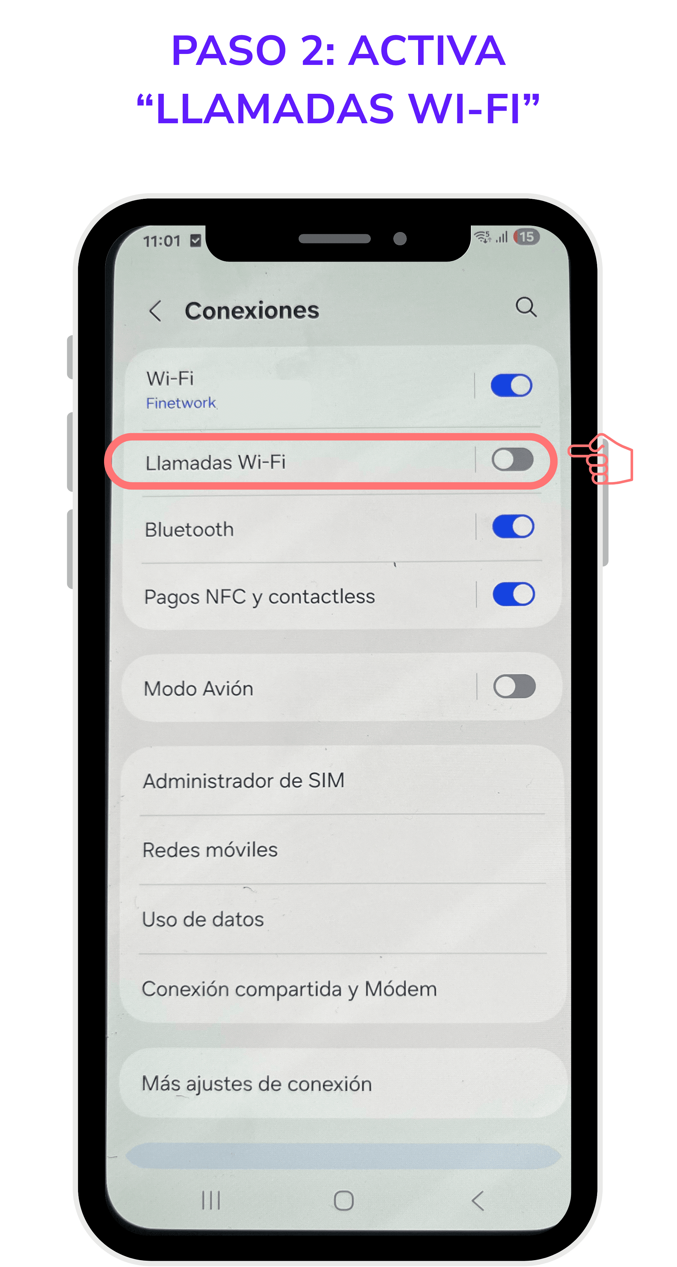 Este servicio está activado por defecto en todas las líneas de Finetwork. Solo tienes que seguir las siguientes indicaciones para activarlo en tu dispositivo móvil: