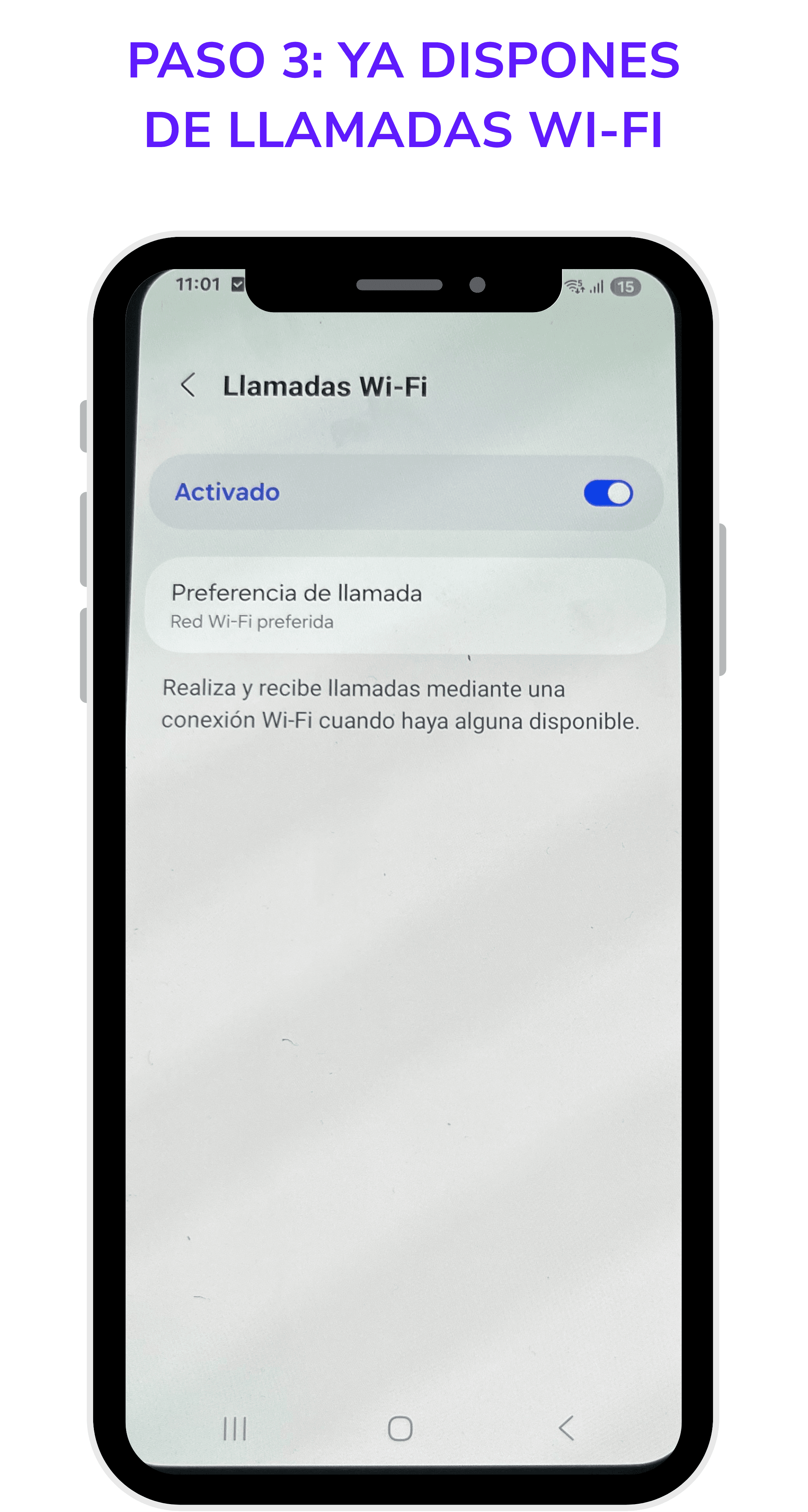 3. Revisa los ajustes de tu dispositivo para verificar que esté configurado para utilizar el servicio de Vo-WiFi.