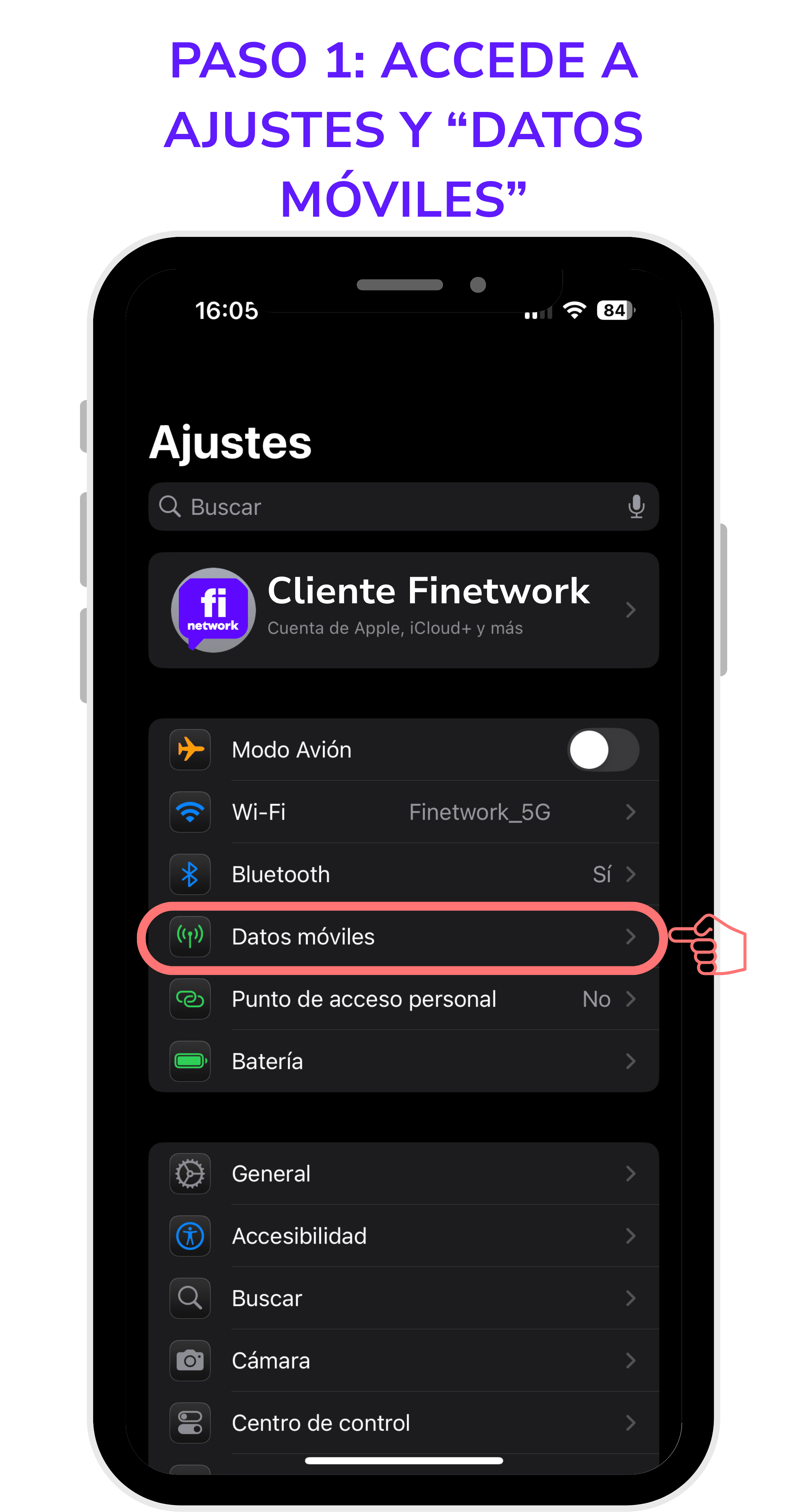 2. Selecciona el apartado Datos Móviles.