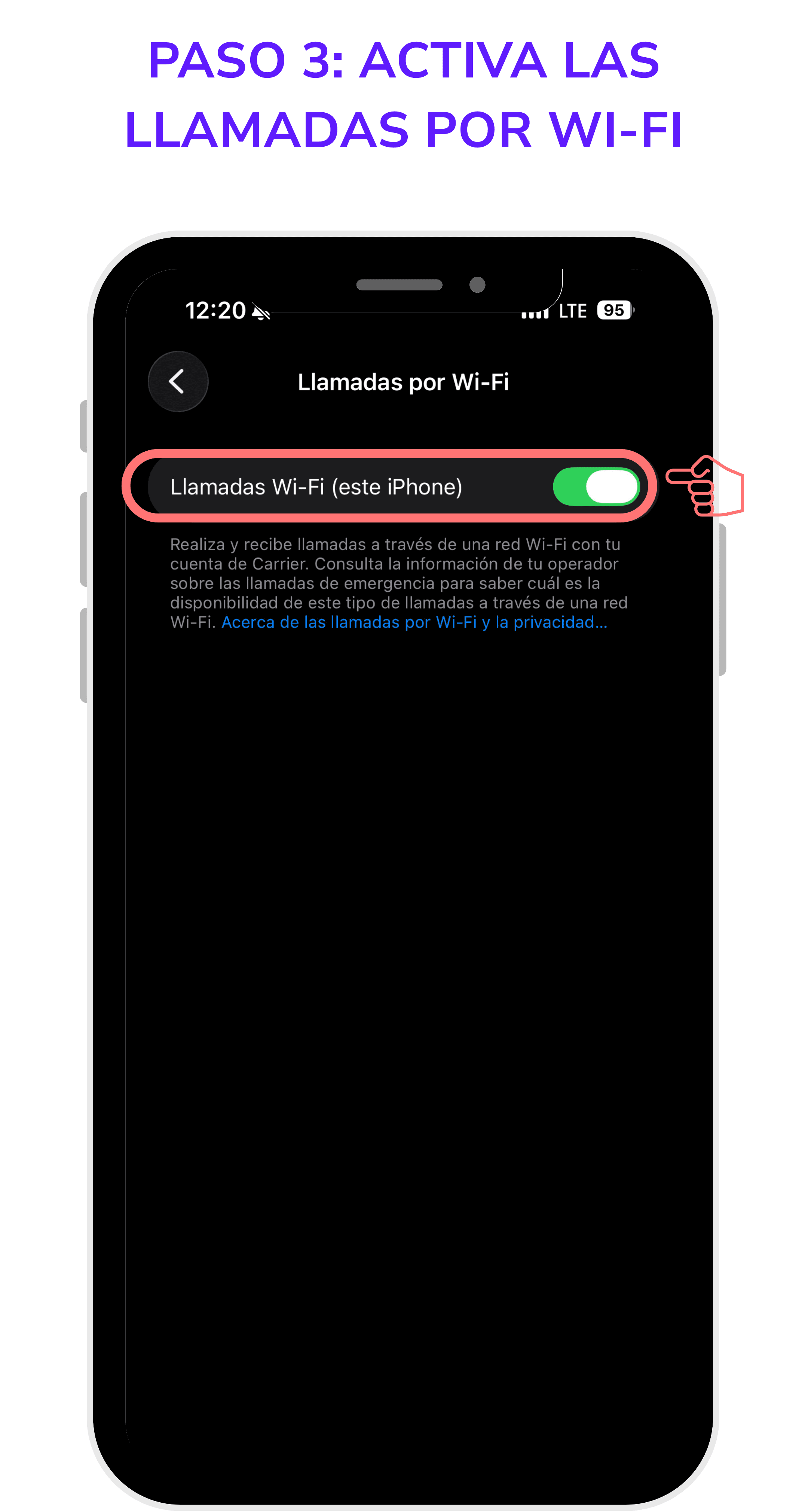 4. Activa el interruptor "Llamadas Wi-Fi en este iPhone"